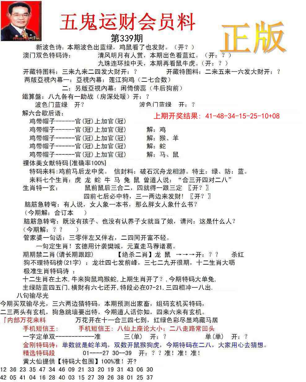 339期正版五鬼运财会员料[图]